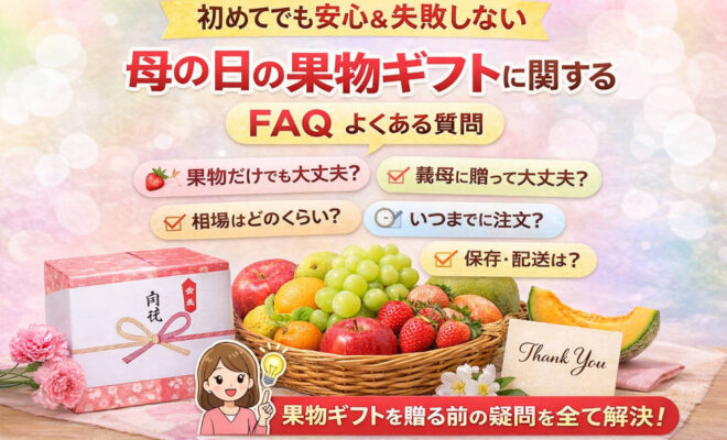 このFAQでは、母の日の果物ギフトについて多くの人が疑問に感じやすいポイントを整理し、安心して選ぶための参考情報を分かりやすくまとめています。