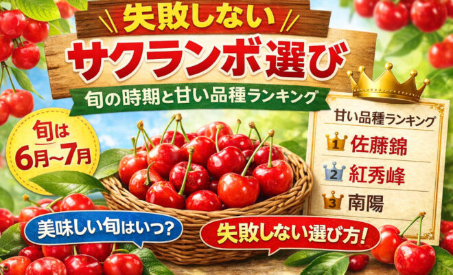 この記事では、サクランボの旬の時期や代表的な品種の特徴、甘くて人気の品種ランキング、さらに失敗しないサクランボの選び方まで詳しく解説します。旬のサクランボを最高の状態で楽しみたい方は、ぜひ最後までご覧ください。